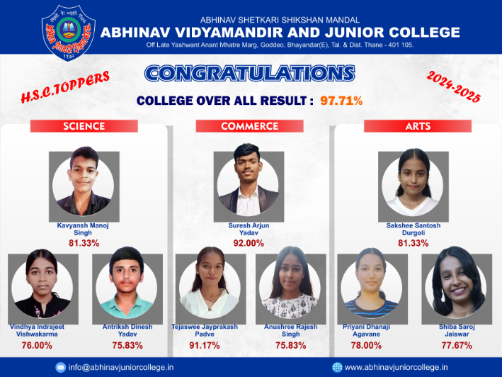 The Abhinav Shetkari Shikshan Mandal is registered, public Trust established on 26 January, 1972. The Great Freedom fighter LATE SHRI. MORESHWAR NARAYAN PATIL (BAPUJI) formed a public trust consisting of freedom fighters & local farmers of the area in the name & style as ABHINAV SHETKARI SHIKSHAN MANDAL to provide education for weaker section of the society specially for the wards of poor illiterate farmers. The trust was registered on 16th September 1972 under no. E- 437 Thane & The doors for education of all religious were widely opened.